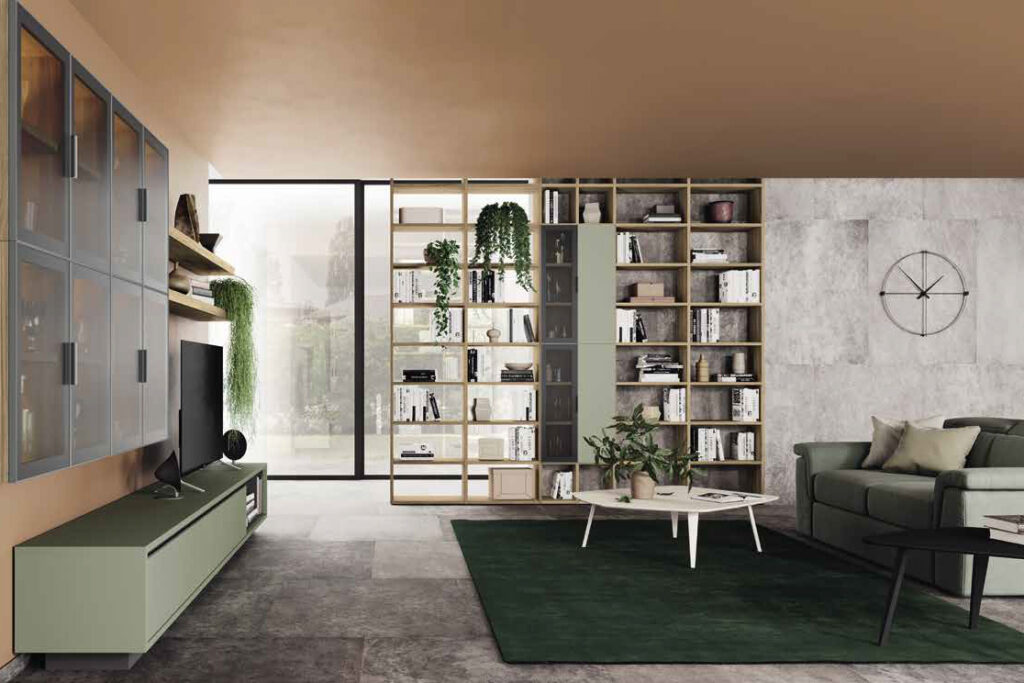 La modularità eccezionale di questa linea di librerie si presta ad arredare il living maniera fresca e curata, prestandosi anche come elemento separatore per definire gli ambienti senza rinunciare alla luce.