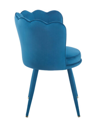 Iris è una sedia dal design originale e distintivo, caratterizzata da uno schienale sagomato con profilo ondulato che richiama la forma di un fiore. L’imbottitura accogliente e il rivestimento in velluto donano comfort e un tocco raffinato, mentre le gambe sottili in tinta, con terminali in metallo dorato, aggiungono eleganza e stabilità.