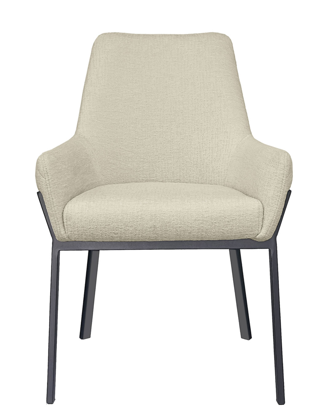 Le gambe in metallo verniciato contrastano con la morbidezza del rivestimento, per un mix di comfort e stile ideale in ogni zona pranzo moderna.