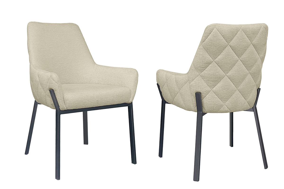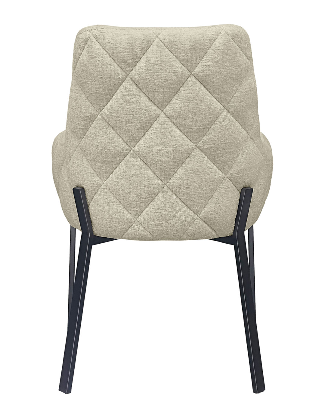 Sedia imbottita dal gusto contemporaneo, con schienale avvolgente e raffinata trapuntatura a rombi sul retro.